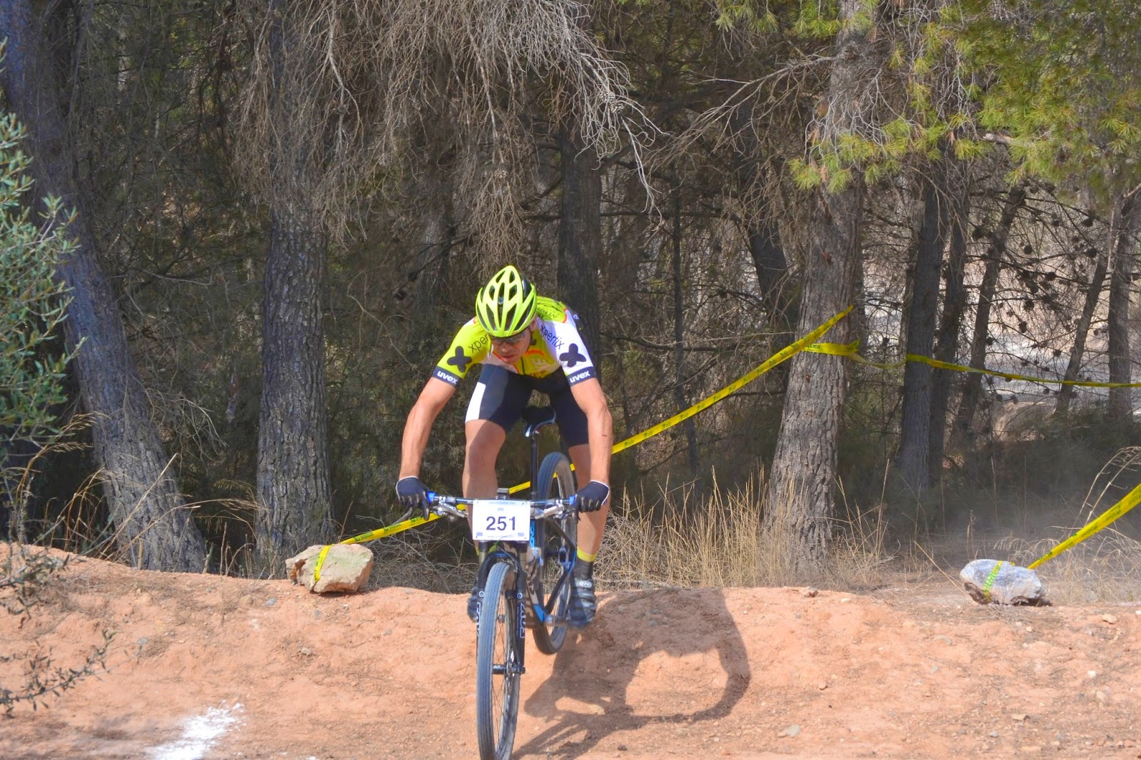 A la cita acudieron unos 300 bikers dispuestos a darlo todo por un circuito bonito, rompepiernas y…… deslizante!!, ya que por la sequedad del terreno y lo suelto del mismo cada curva se iba a convertir en un derrape y la misión de meter la bici en las curvas un esfuerzo de cirujano.