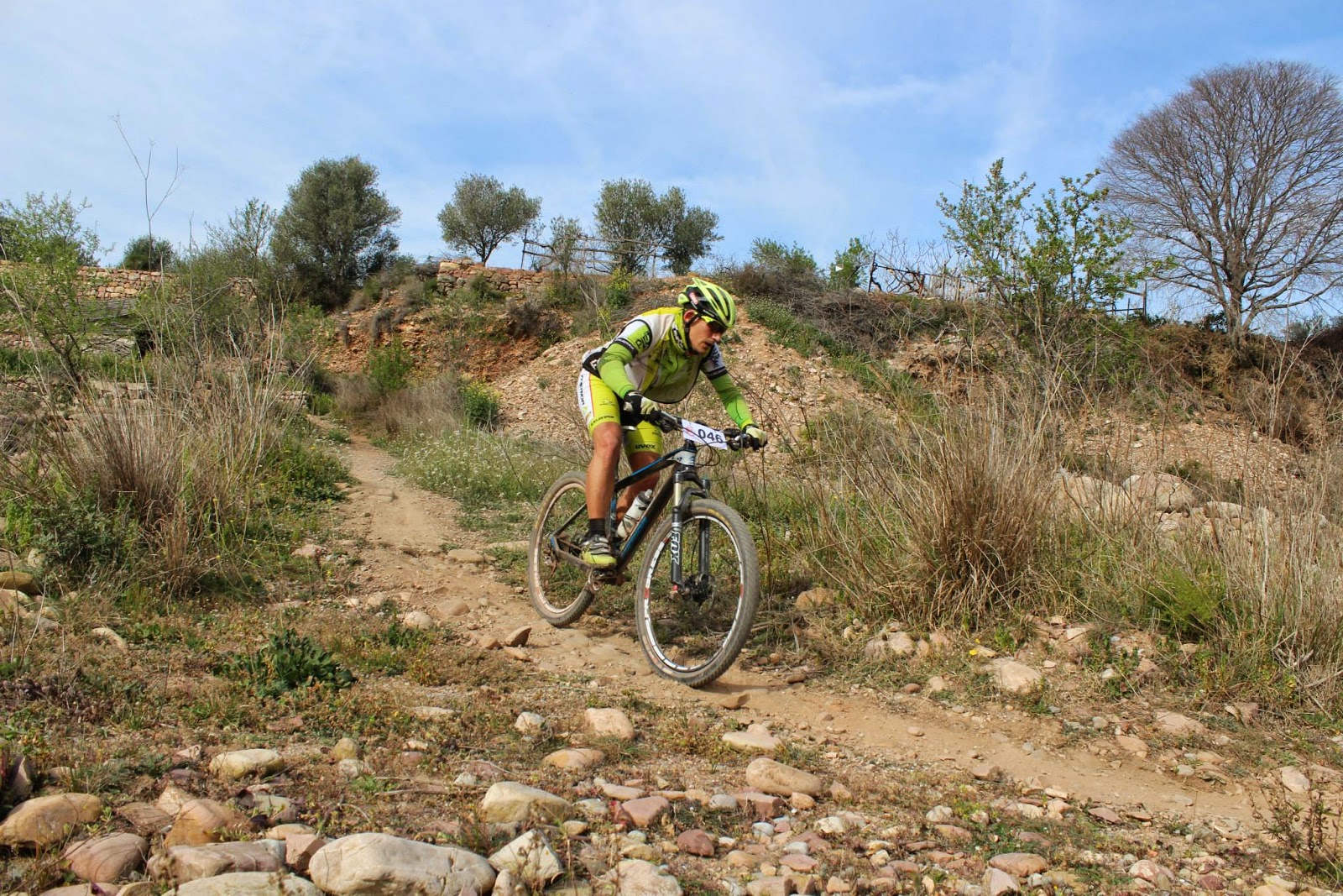 La salida fue muy rápida, unos cinco kilómetros de pista-asfalto en una suave bajada que hacía volar a los bikers, hasta llegar bajo las antenas del Picayo, donde nos esperaba una fuerte subida para llegar al collado de Peñas de Guaita. Desde aquí bajamos hacia la urbanización de Monasterios, donde se cogía la primera senda. Un tramo de subida por pista y su correspondiente bajada nos dejaba a los pies del temible Xocainet, un “tachón” que en su parte inicial está hormigonado (y ya se sabe que ocurre cuando vemos hormigón en una pista forestal, que nos entra la risa). La fulgurante bajada del Xocainet te dejaba en la vía verde de Ojos Negros, donde comenzaba un tramo de la prueba muy rápido, por pista sin desnivel ninguno. Esta pista nos conducía a las interminables sendas y trialeras, tanto de bajada como de subida. Una auténtica delicia para los bikers amantes de las piedras y el “lado oscuro”.