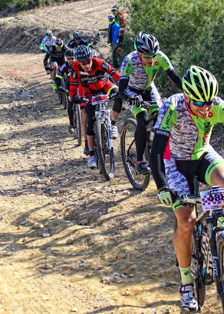 De la prueba destaca su dureza inicial, donde gran parte de los 2200 metros de desnivel acumulado se suman casi la mitad en los primeros 24 km. El resto, un rompe piernas con pistas de subida, pistas de bajada, pistas en llano.....eso si, las pistas de bajada eran de alta tensión con elevadas velocidades punta (se alcanzaron mas de 60 km/h), jalonadas de curvas cerradas que ponían a prueba los frenos. De vez en cuando se alternaba el recorrido con alguna que otra senda donde Iván pudo dar rienda suelta a su lado oscuro.