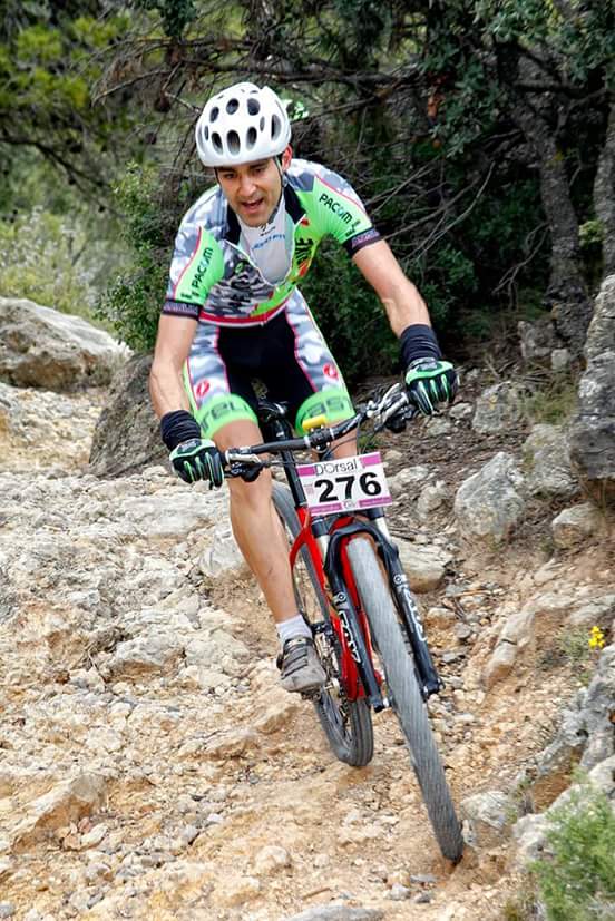 Con estas condiciones se da la salida y nos ponemos a pistear a gran velocidad para coger la primera senda (por momentos pensaba, que ya no la abandonaríamos hasta la meta). Un perfil oscilante, sin grandes pasos de montaña pero con subidas duras y técnicas, va poniendo a cada uno en su sitio. Allá por el km 25 cogemos la primera senda de bajada 5 estrellas, que tanto por longitud como por dificultad técnica pone a los bikers al límite. No acaba aquí la cosa y con alguna transición por pista se siguen enlazando sendas a tutiplen: de subida, de bajada, con rocas, con escalones, con enlazadas rápidas, con cambios de rasante ... caprichoso carrusel con final en dos tramos de barranco, más llanos y cómodos pero igual de "disfrutones" para ya, ahora sí, finalizar nuestra participación, otra vez en las calles de Utiel.