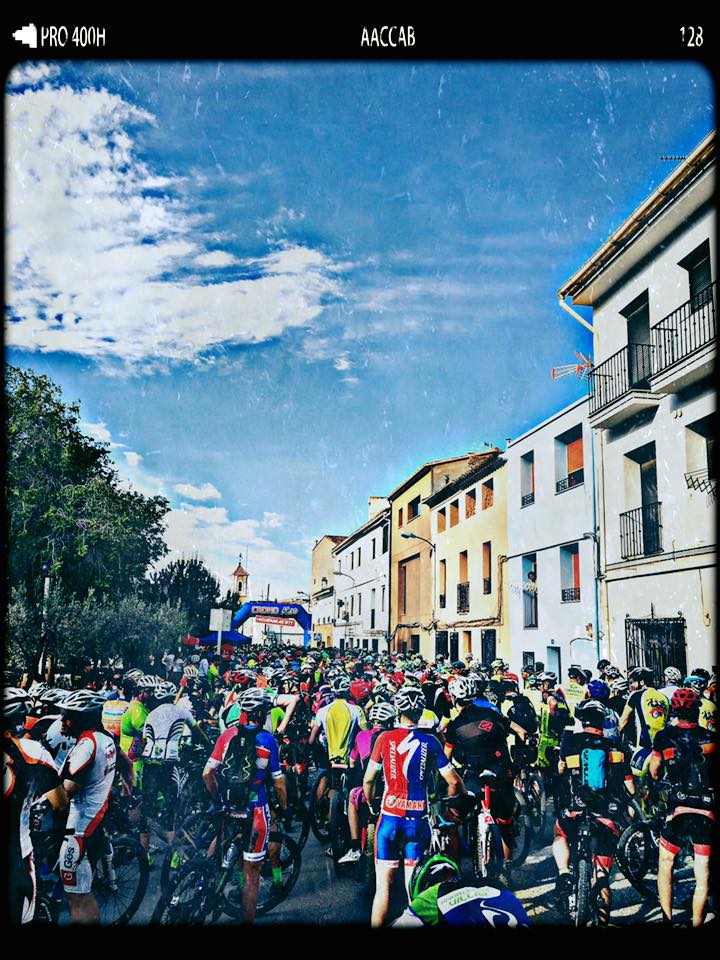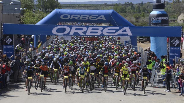 Amanecía en Guara y la competición se respiraba en el aire, los nervios estaban a flor de piel, y los bikers ultimaban los detalles para poder sacar lo mejor de sus piernas y de sus máquinas. A las nueve en punto se daba inicio la prueba, y el pelotón se estiraba como si fuera el cuerpo de una serpiente serpenteando por los caminos que nos llevaban hasta el embalse de Vadiello, un lugar de excepcional belleza y donde se iniciaba la primera gran subida del día, un gran desnivel a superar que se hizo muy ameno gracias a las espectaculares vistas del Tozal de Guara y el embalse. La bajada hacia la cara norte de la sierra fue una auténtica “locura”, sendas y más sendas, tramos de trialeras técnicas, vegetación en pleno estallido ante la primavera y ríos y riachueluelos que tuvimos que cruzar varias veces, toda una gozada para los amantes de la naturaleza. Como todo lo que sube baja y viceversa, ahora nos tocaba volver a subir, teníamos por delante más de 20 km de subida, que una vez más gracias al paisaje tan espectacular por donde transitábamos, se hizo muy llevadero y también hizo más llevadera la subida el pensar que cuando llegásemos a la cota más alta nos esperaba un vertiginoso descenso por pista de más de 12 km hasta casi llegar a meta, digo casi porque nos habían reservado una pequeña sorpresa para el final. Que emoción ascender al reino de las piedras donde la vegetación es casi inexistente, donde te puedes fusionar con el buitre y ver y sentir lo que sienten cuando nos observan desde las alturas. Toda esa emoción se convirtió en pura adrenalina cuando comenzamos el descenso, piedras y más piedras nos esperaban en el camino, un terreno descompuesto por la erosión de las nieves invernales donde solamente unos pocos bikers somos capaces de disfrutar y gozar como perras ante un terreno tan hostil.