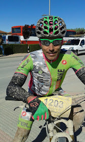 Al mediodía sonaron los cuernos, la batalla daba su inicio y los legionarios comenzaban su gran aventura. En los primeros 60 km las bajas fueron pocas, el enemigo planteó una estrategia de desgaste, un terreno con grandes y pequeños charcos y un barrizal muy fino, que penetraba en la mecánica de nuestras monturas y las hacía crujir como sino hubieran sido engrasadas nunca. Nuestros cuerpos quedaron cubiertos de una fina capa de tierra, los ánimos estaban muy altos, habíamos superado la mitad de la batalla con éxito. La madre naturaleza es sabia y en su sabiduría envió a Eolo para combatirnos en la segunda parte de la prueba, el mayor enemigo de un ciclista y en este caso su lugarteniente El Cierzo, implacable y despiadado, fue disgregando las legiones hasta hacerlas cenizas. Solo pudieron sobrevivir aquellos que fueron capaces de seguir en formación para darse cobijo los unos a los otros. El viento era brutal con rachas que superaron los 70 km/h, era capaz de hacer que cayeras de tu montura y dieras con tus huesos en el suelo, herido de muerte hasta llegar a la línea de meta, la ansiada meta donde una mezcla de ira, rabia, dolor, llanto y alegría se mezclaban en nuestros corazones.