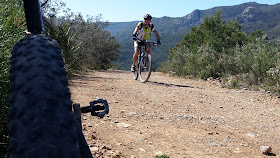 Cuando badeamos el barranco de las Peñas Albas tras rodear el altico del Chorizo, con las piernas ya bastante fatigadas después de tanto sube-baja, el camino del Rincón de Cucala se tornó pared. Esos primeros 500 metros al 12% de media, interminables, pedregosos, técnicos... y los 1700 posteriores (9% de media) que se terminaban en 'single track' ¡uf! ¡Qué dolor de patas!