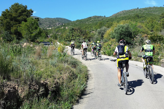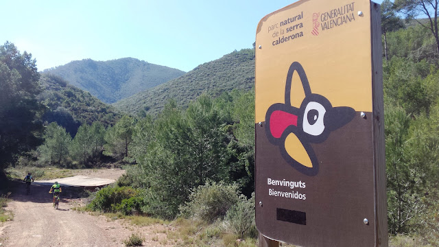 Tras un primer calentón (1 km al 7,5% de emdia) en la rampa del camino de la Font del Comte y pocos metros antes de llegar a ella, torcimos a la izquierda, poniendo las bicis definitivamente sobre tierra, coincidiendo con la entrada en la Provincia de Castellón.