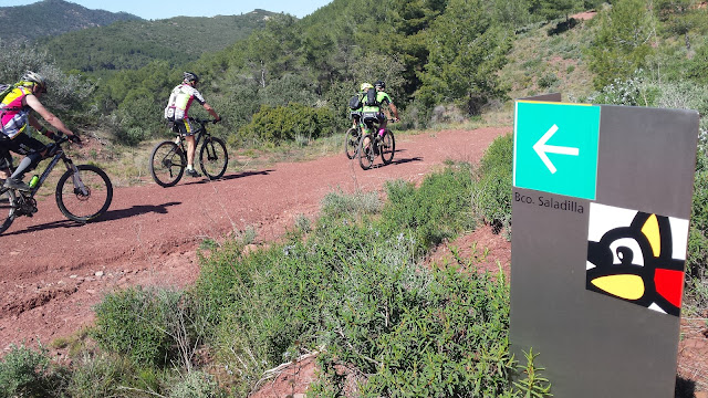 Lo que no sé es si hubiese valido la pena ir al Tristán, porque cruzado el barranco de la Saladilla teníamos algo más de 1 km al 8% de media por delante, alcanzando la cota más alta de la ruta 735 m y acabando relativamente cerca del punto donde nos habíamos desviado, a nada de la fuente del Tristán que, ya que llevaba agua, aprovechamos todos para aprovisionarnos.