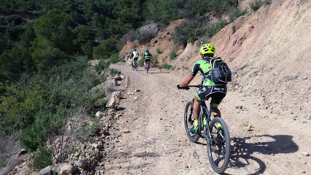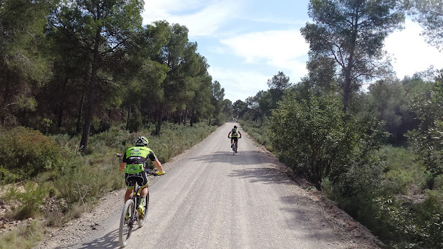 Este cambio se produjo antes de cruzar el barranco de Porta Coeli por primera vez, coincidiendo con un periodo de relajamiento... aunque el viento soplaba en contra con algo de fuerza. Entonces empezó la sesión de fondo: todos en fila, con algún que otro relevo, rodando rapidito hacia el barranco del Carraixet.